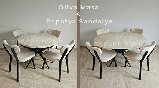 Oliva Masa Badem Sandalye Takımı - Açılabilir Yuvarlak Mdf Masa + 4 Sandalye | Mutfak, Salon 100x100